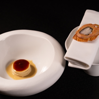 Creamy flan of foie gras, caramel teriyaki and Roset eel