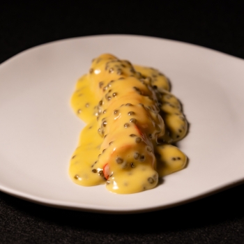 Shelled Chatka king crab with Hollandaise sauce and caviare