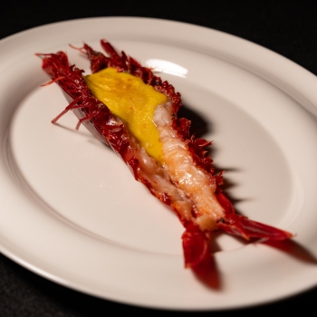 Grilled XL scarlet prawn with saffron zabaione